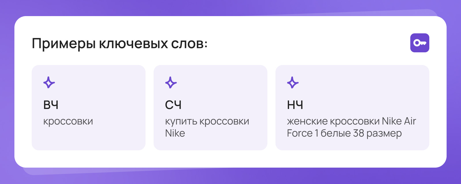 Высокочастотные – это общие фразы с высоким уровнем конкуренции.