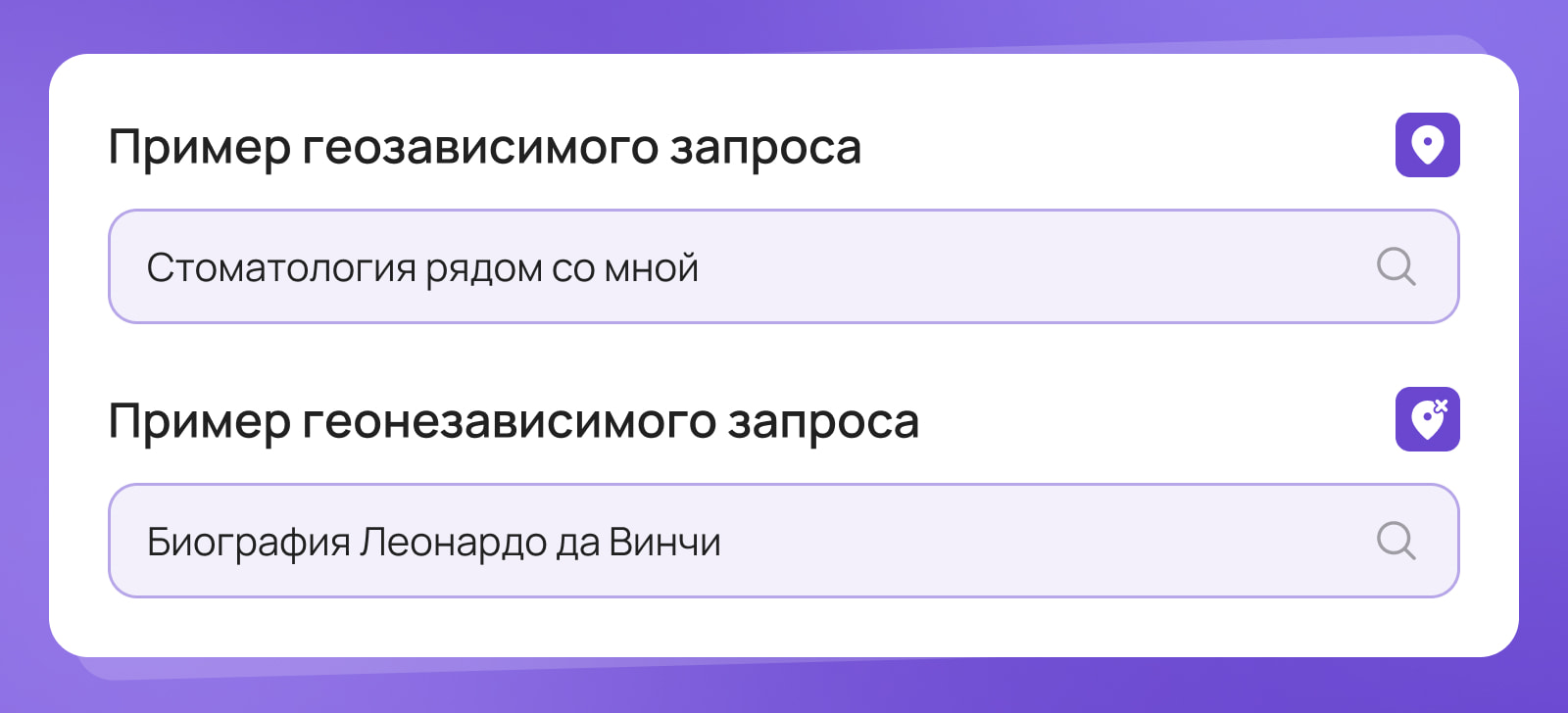 У геозависимых результаты поиска разные и зависят от того, где находится пользователь. Такое СЯ актуально для локального бизнеса.