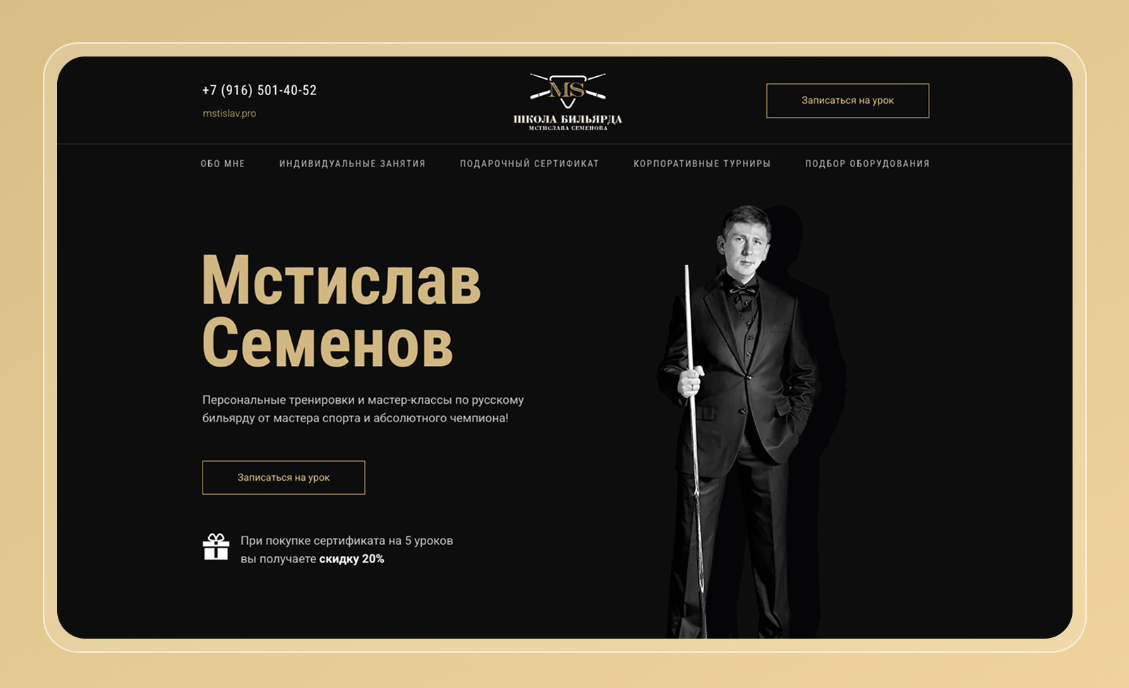 Небольшой сайт, который презентует ваши работы, услуги или компанию. Основная цель – познакомить потенциальных клиентов с вашей деятельностью и контактами. Часто этого достаточно для многих специалистов: фотографов, дизайнеров, юристов.