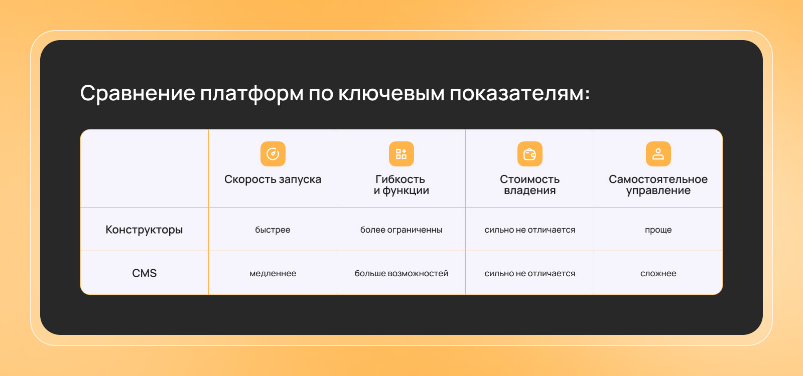 Чтобы вы могли понять, какой вариант вам подходит лучше всего, сравним платформы по ключевым показателям: