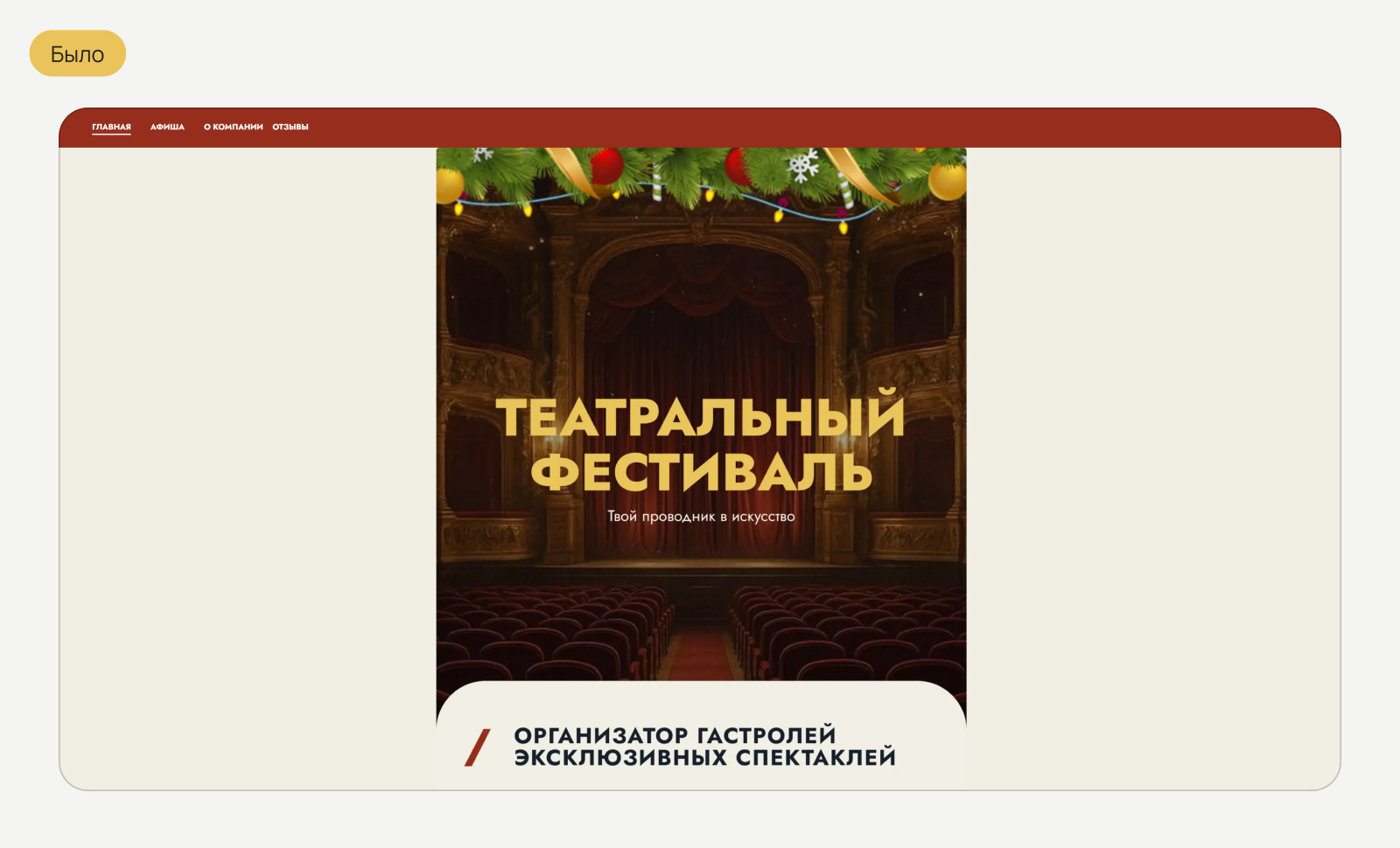 - Сайт не отражал масштаб проекта: пользователь не видел на одном ресурсе весь репертуар и географию гастролей.