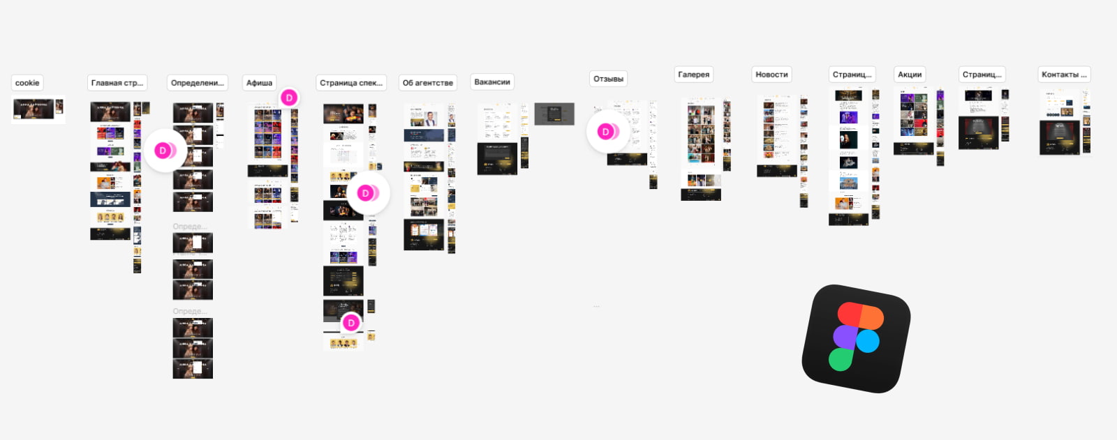 Под каждый спектакль создавали отдельный лендинг на конструкторе Tilda. С ростом количества городов и премьер таких страниц стало десятки. С одной стороны – простая система продажи билетов, с другой – большое количество разрозненных мини-сайтов с продублированным контентом. Сначала такая схема казалась удобной: есть событие → создаём страницу → запускаем рекламу и продаём билеты. Но чем быстрее рос бизнес, тем больше возникало проблем: